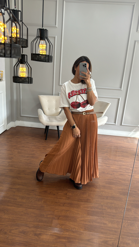 Saia Plissada, longa, elástico na cintura. Franzido perfeito, para dar movimento sem aumentar volume corporal